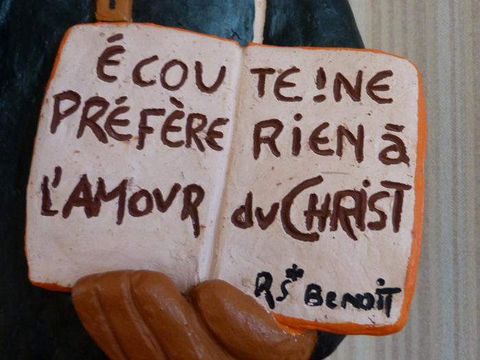 Écoute, mon fils, l'enseignement du maître, ouvre l'oreille de ton coeur ! Accepte volontiers les conseils d'un père qui t'aime et fais vraiment tout ce qu'il te dit. (Règle de St Benoît)