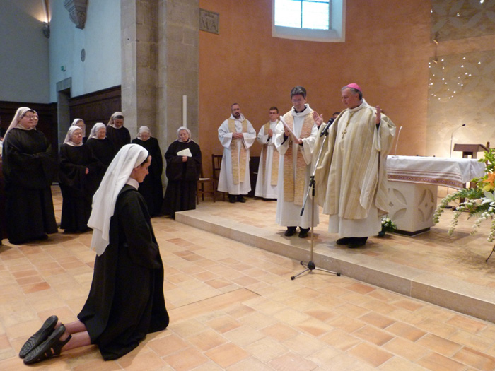 Celui qu'on va recevoir promet devant tous, dans l'oratoire, de rester toujours dans la communauté, de vivre maintenant en moine, et d'obéir. (Règle de St Benoît 58)