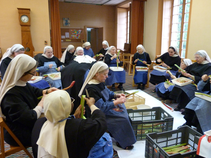 Entre les « grandes heures » de Laudes et Vêpres, la journée monastique ne se prend pas au sérieux, ou plutôt si, elle prend au sérieux l’ordinaire des jours et le ponctue d’un rythme de prière liturgique adapté, donc lui aussi « ordinaire ». Dans la « maison commune » du monastère – pour reprendre les mots du pape François - le travail et la prière, alternés dans le temps, se limitent et se fécondent l’un l’autre.