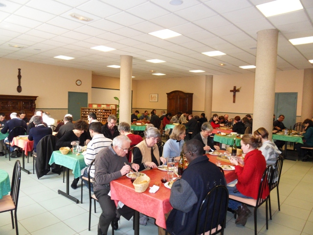La salle St Benoît est là où nous accueillons – à table – ceux qui le désirent.